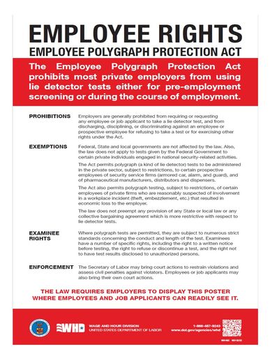 The Employee Polygraph Protection Act prohibits most private employers from using lie detector tests either for pre-employment screening or during the course of employment.