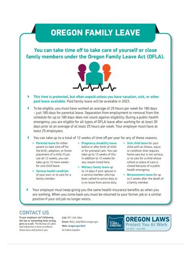 You can take time off to take care of yourself or close family members under the Oregon Family Leave Act.