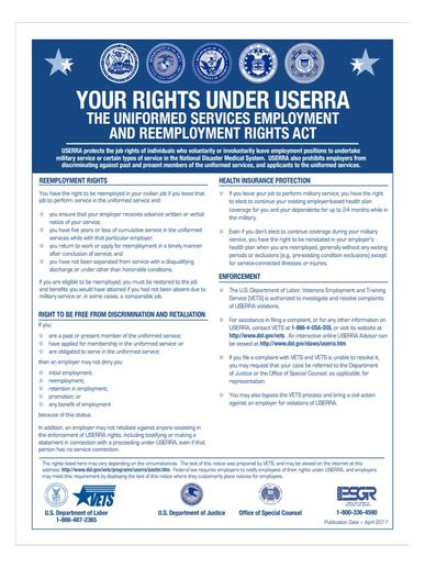 USERRA protects the job rights of individuals who voluntarily or involuntarily leave employment positions to undertake military service or certain types of service in the National Disaster Medical System.